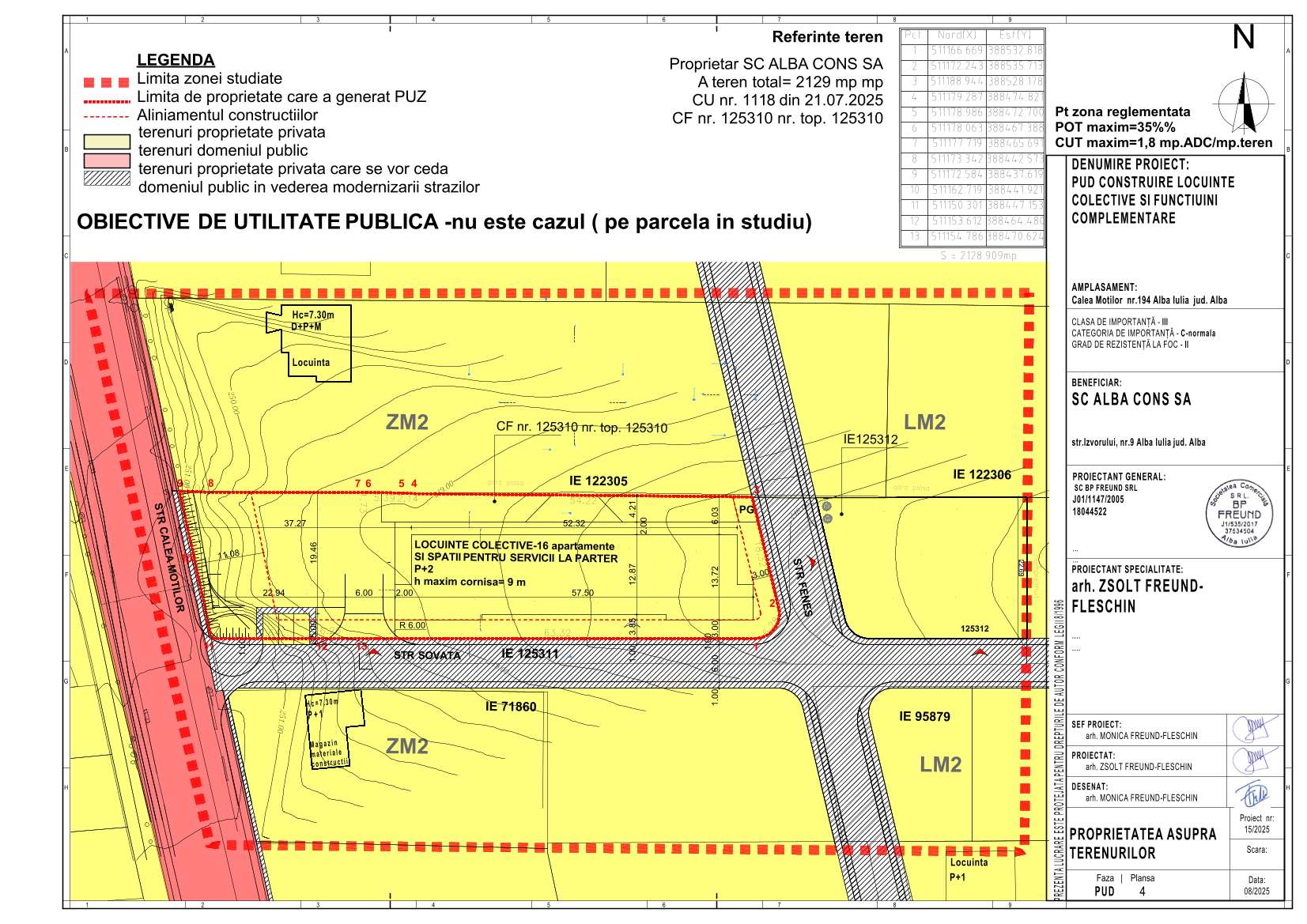 10.11.2025 Primăria municipiului Alba Iulia - Informare, în baza ordinului 2701 din 2010, cu privire la Consultare asupra propunerilor preliminare Plan Urbanistic de Detaliu – ELABORARE DTAD – PENTRU DESFIINTARE CORP C1, C2 SI ELABORARE DTAC PENTRU CONSTRUIRE IMOBIL DE LOCUINTE COLECTIVE IN BAZA UNUI PUD CONFORM REGULAMENTULUI LOCAL APROBAT CU HCL 451/2021, BRANSAMENIE LA UTILITATI SI IMPREJMUIRE PARTIALA, LOC. ALBA IULIA, STRADA ȘTEFAN CEL MARE, NR. 13