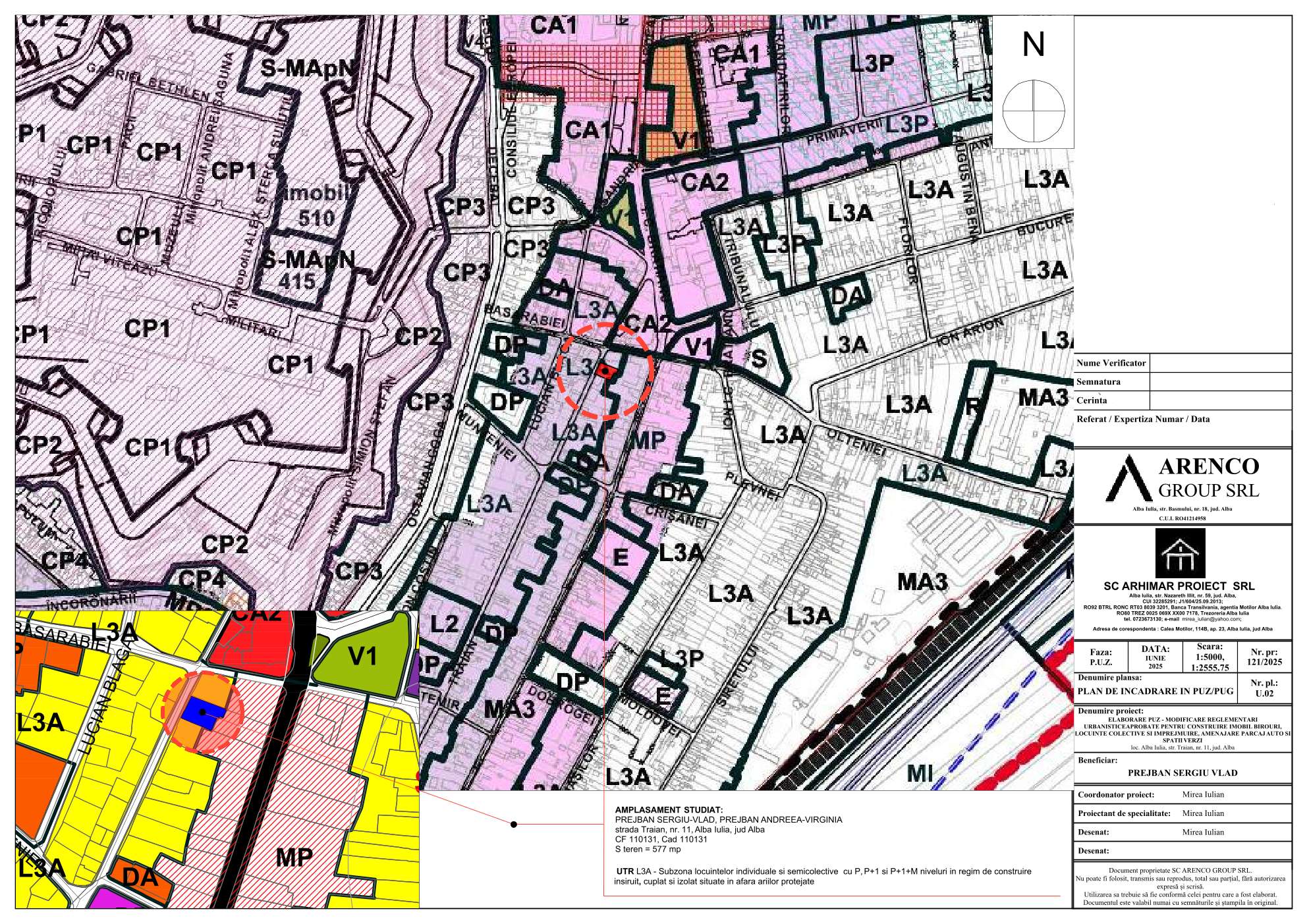 06.03.2026 Primăria municipiului Alba Iulia - Informare, în baza ordinului 2701 din 2010, cu privire la Informare asupra propunerilor preliminare Plan Urbanistic Zonal–, ELABORARE PUZ - MODIFICARE REGLEMENTARI URBANISTICE APRONBATE, PENTRU CONSTRUIRE IMOBIL BIROURI, LOCUINTE COLECTIVE SI IMPREJMUIRE, AMENAJARE PARCAJ AUTO SI SPATII VERZI, LOC. ALBA IULIA, STRADA TRAIAN, NR.11